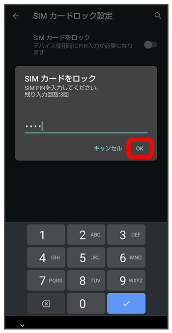 PINコードを操作するときや、SIMカードロック設定時に電源を入れたときは、PINコードの入力が必要になります。