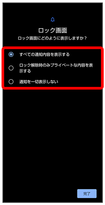 - 変更前の画面ロック解除方法がまたは以外のときは、設定が完了します。