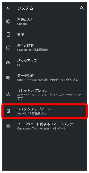- システムアップデートが進むと最後にが表示されます。タップして、システムアップデートを完了させてください。
