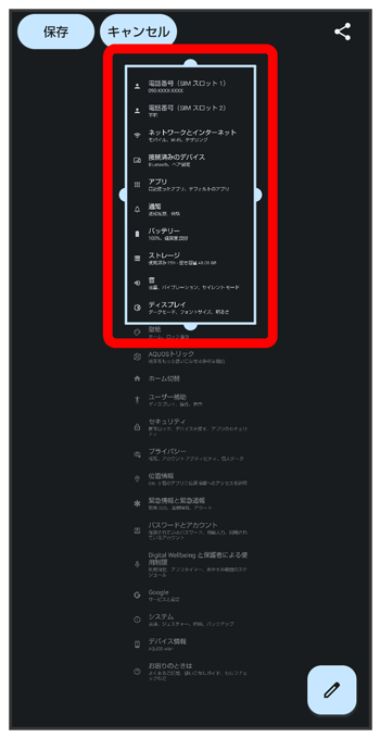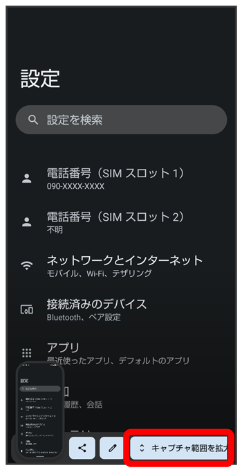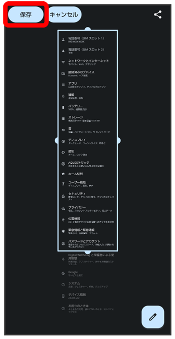 をタップすると指定した範囲のスクリーンショットが別のファイルとして保存され、共有や編集ができます。