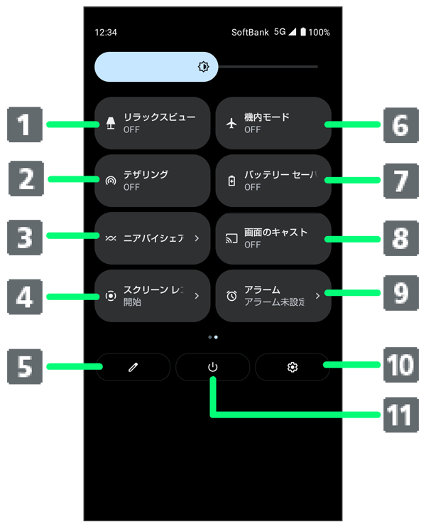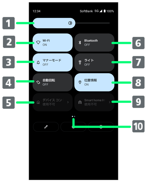 - マナーモード(OFF/バイブ/ミュート)の切り替え