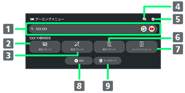 ゲーミングメニュー画面の見かた