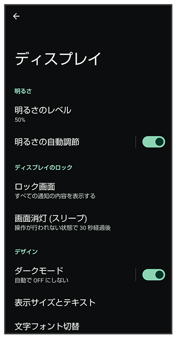 | 表示サイズとテキスト | フォントサイズを7段階で設定できるようになります。 |