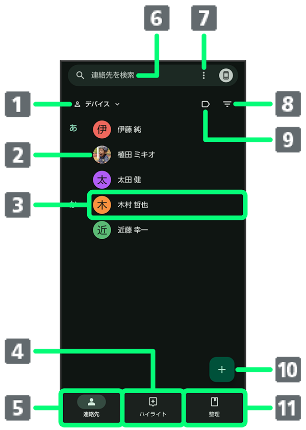 - 連絡先をフィルタリングする項目(電話番号やメールアドレスなど)を表示/非表示