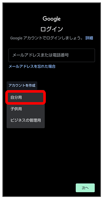 - 子供用のアカウントを作成する場合は、をタップし、画面に従って操作してください。