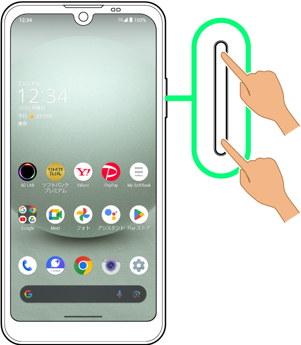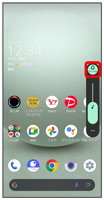 音量Upキー/音量Downキーを押して音量バーを表示させ、マナーモードが解除されます。