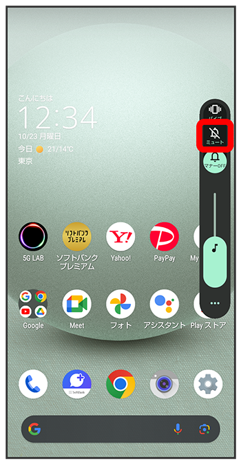 クイック設定パネルからマナーモード(ミュート)を設定することができます。