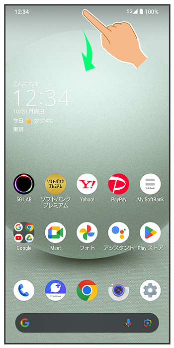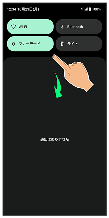 - 通知パネルが開いてない状態で、ステータスバーを2本の指で下にフリックしても、クイック設定パネルが表示されます。