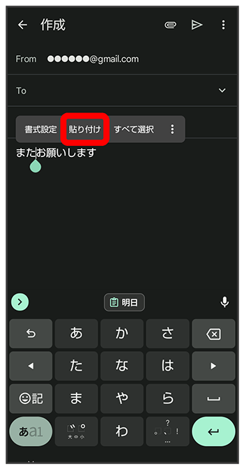 貼り付ける文字をタップしても、貼り付けられます。あらかじめクリップボードを有効にしてください。アプリによっては、利用できないことがあります。