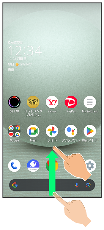 画面下部から上にドラッグ