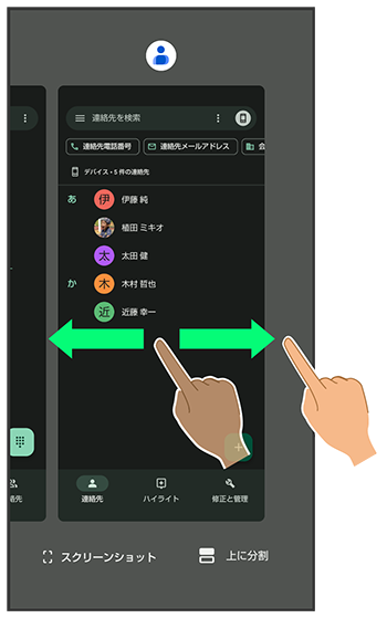 アプリの履歴を左右にドラッグして、次に操作したいアプリの履歴をタップ