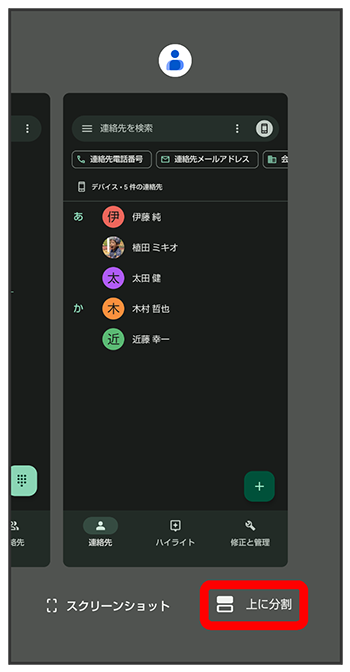 本機の表示画面を分割し、2つのアプリを表示、操作できます。