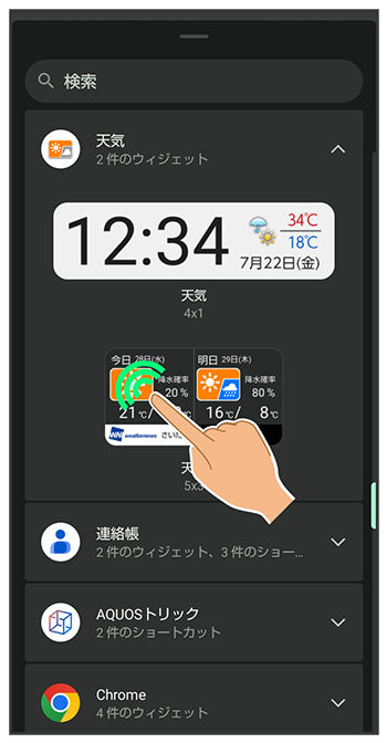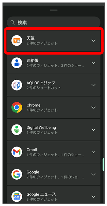 検索バーの下に、おすすめのウィジェットが表示されます。