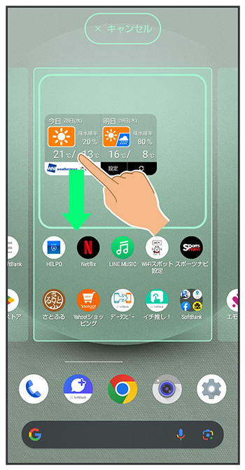 ホーム画面でウィジェットをロングタッチ「削除」までドラッグ