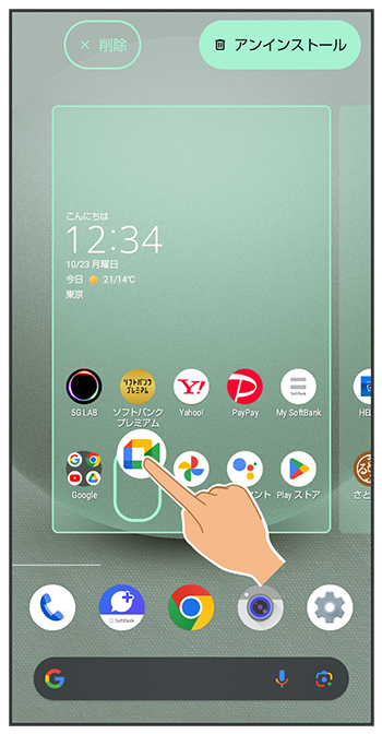ホーム画面で、まとめたいアイコンをロングタッチ