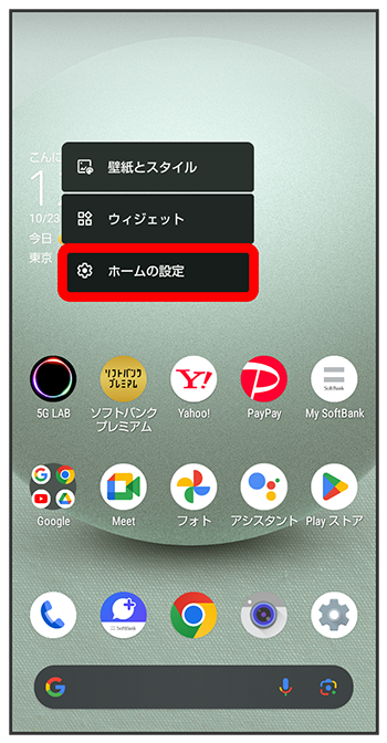 | Google アプリの表示 | ホーム画面の左側に、ニュースや天気などの情報を表示するかどうかを設定します。 |