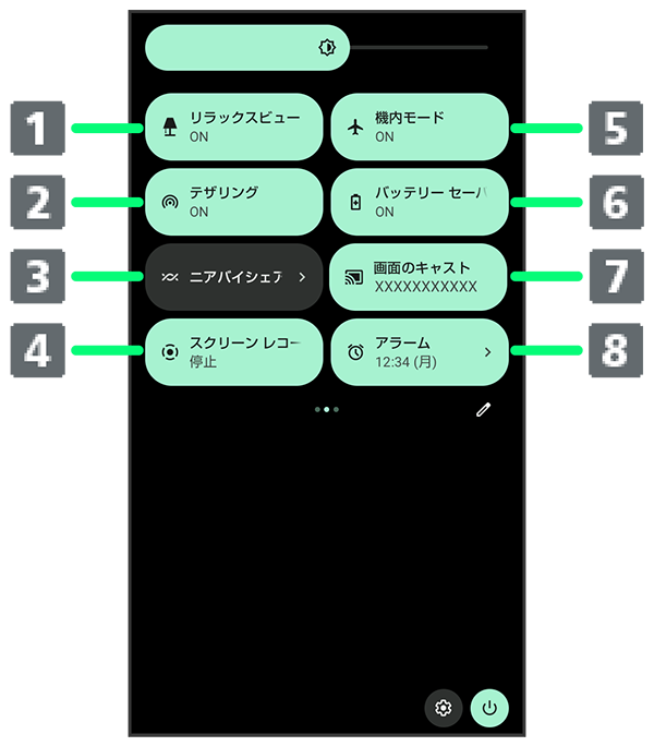 - 機能ボタンの表示領域を左右にフリックすると、シートを切り替えることができます。