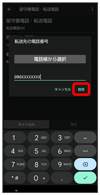 電話番号入力欄をタップ転送先の電話番号を入力