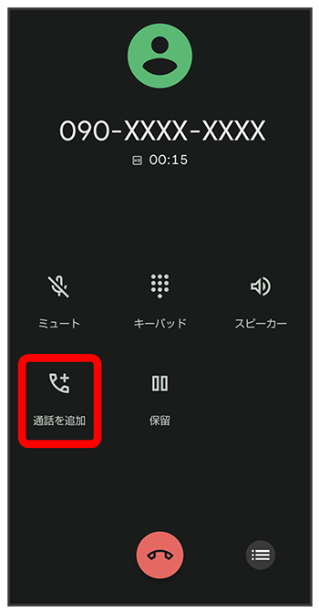 - 電話番号発信画面の上部を下にフリック通話を追加する連絡先をタップ通話を追加する電話番号をタップしても、通話を追加できます。