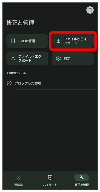 本機やほかの携帯電話でSDカードに保存(バックアップ)した電話帳データを読み込み(インポート)できます。