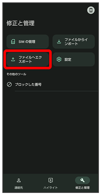 SDカードに電話帳データを保存する