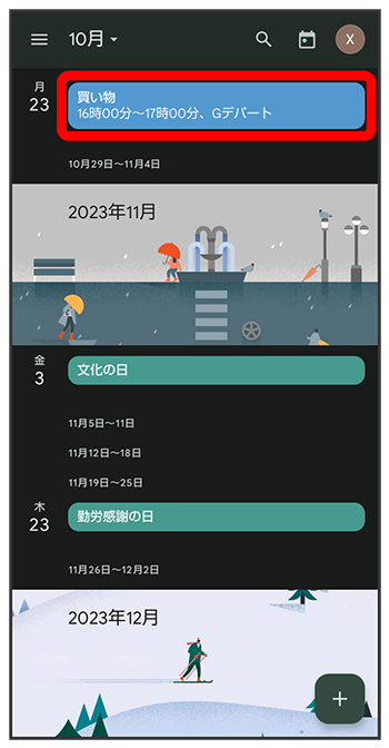 カレンダー画面で![]()