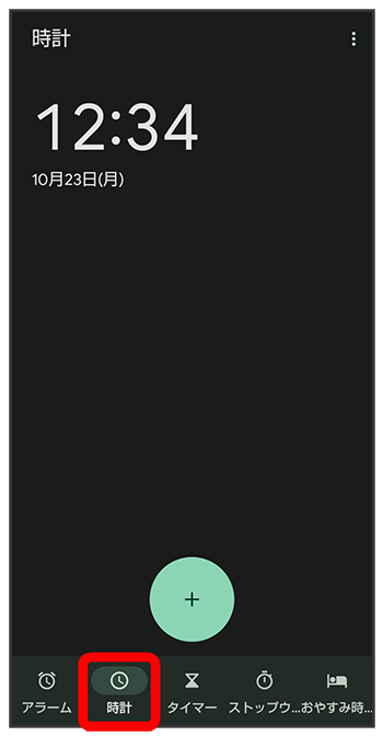 世界時計画面が表示されます。
