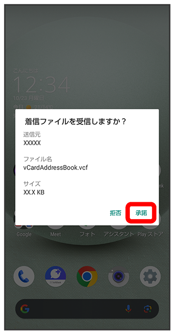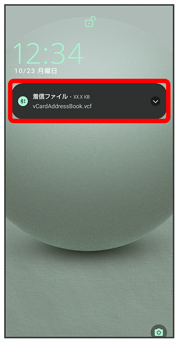 相手からデータの受信要求があると、ロック画面に通知が表示されます。次の操作を行うと、受信することができます。