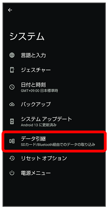 データ引継画面が表示されます。