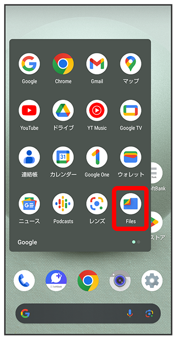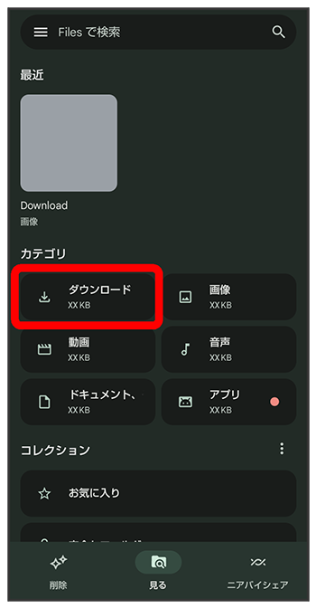 ダウンロード画面で、ファイルをロングタッチ- リスト表示でファイル名の右の