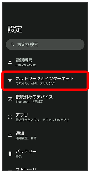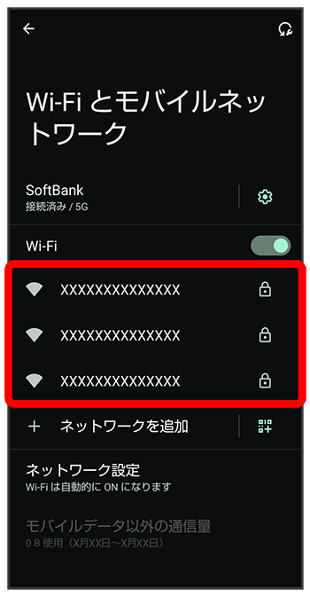Wi-Fiとモバイルネットワーク画面が表示されます。