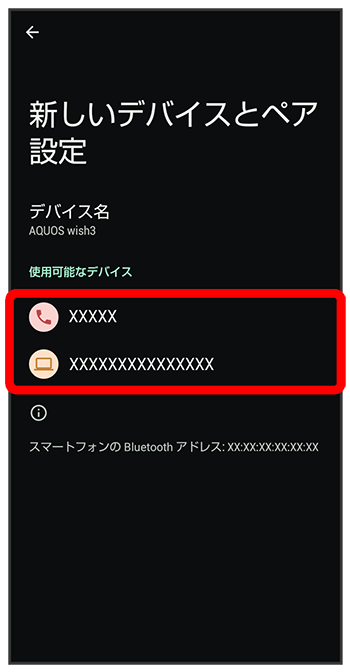 「使用可能なデバイス」欄に近くにあるBluetooth®機器が表示されます。