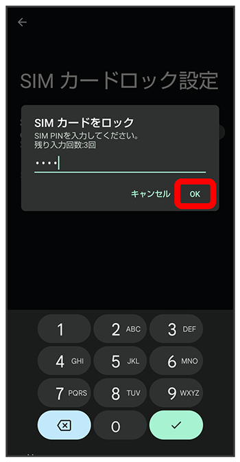 PINコードを操作するときや、SIMカードロック設定時に電源を入れたときは、PINコードの入力が必要になります。