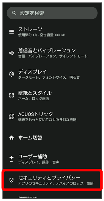 セキュリティとプライバシー画面が表示されます。