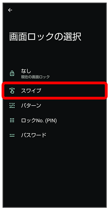 画面をフリックして画面ロックを解除するように設定する