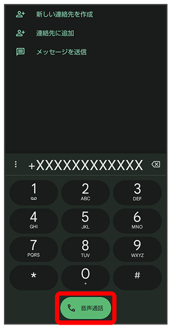 国番号のあとに相手の電話番号(先頭の「0」を除く)を入力