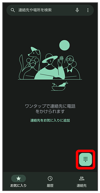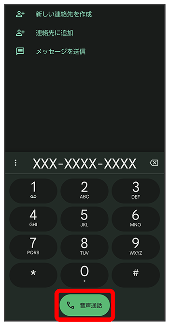 ダイヤルキーをタップして相手の電話番号を入力