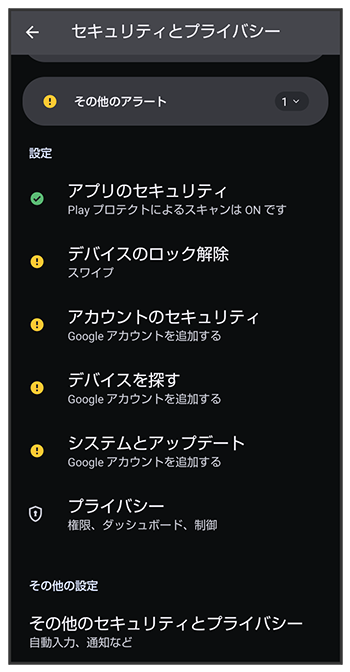 | その他のセキュリティとプライバシー | 、の一部の設定項目がとして追加されます。 がに変更されます。 がに変更され、画面ロック解除方法がまたはのときにも利用できるようになります。 そのほかの項目が一部変更されます。 |