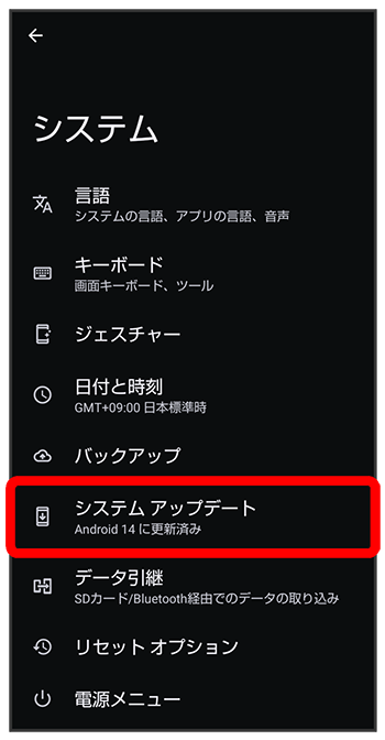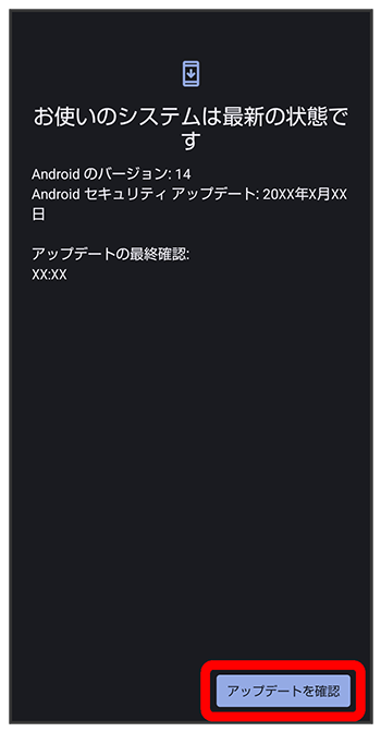 - システムアップデートが進むと最後にが表示されます。タップして、システムアップデートを完了させてください。