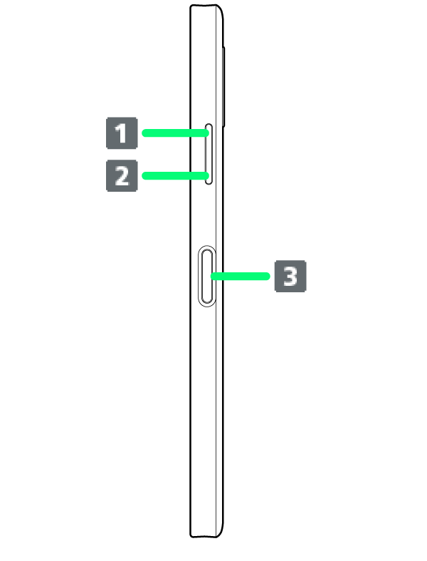 | 電源キー1 | 画面を消灯/点灯します。長押しすると、電源を入れたり、Google アシスタント™を起動できます。2 |