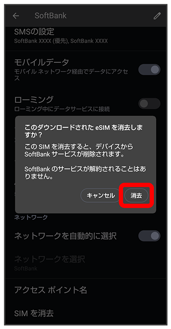 eSIMを消去した場合でも、ご契約が解除されたわけではありません。