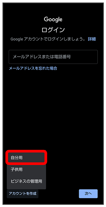 - 子供用のアカウントを作成する場合は、をタップし、画面に従って操作してください。