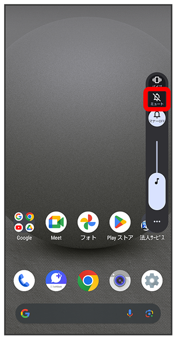 音量Upキー/音量Downキーを押して音量バーを表示させ、マナーモードが解除されます。