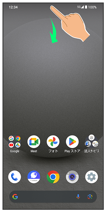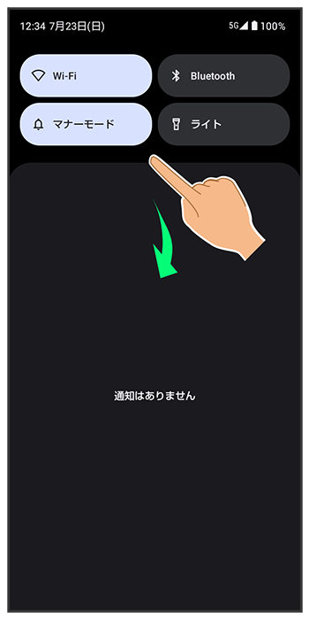 - 通知パネルが開いてない状態で、ステータスバーを2本の指で下にフリックしても、クイック設定パネルが表示されます。