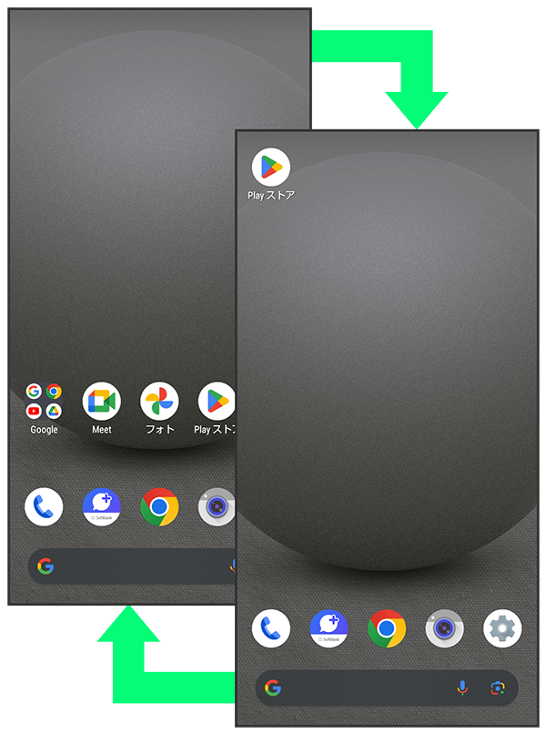 ホーム画面シートが複数あるときは、ホーム画面を左右にフリックすると、ホーム画面シートを切り替えることができます。