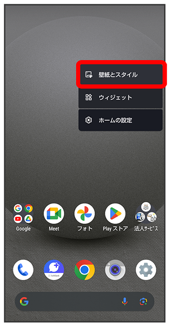 ホーム画面のアイコンがない場所をロングタッチ/(- 選択した画像がランダムで表示されます。