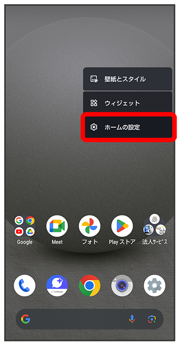 | Google アプリの表示 | ホーム画面の左側に、ニュースや天気などの情報を表示するかどうかを設定します。 |