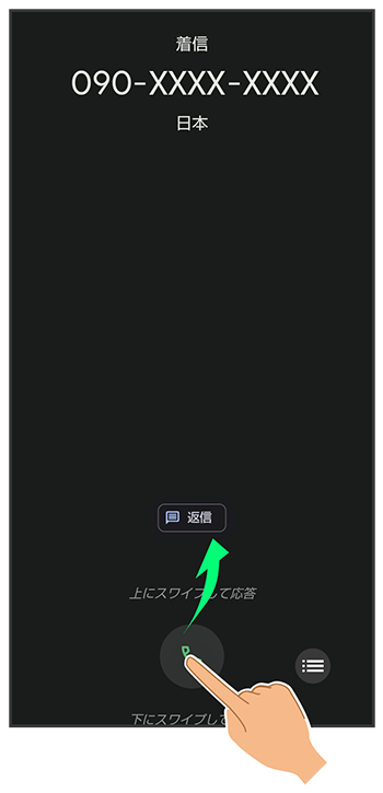 着信中に送信するメッセージをタップ- 画面ロックを解除しているときは、送信するメッセージをタップします。