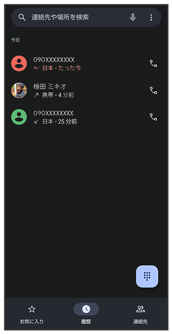 通話履歴一覧画面で確認する相手の名前/電話番号をタップ履歴詳細画面が表示されます。
