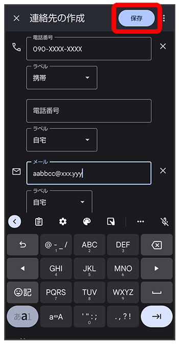 )が切り替わります。 - 新しい連絡先の作成画面でラベル名を入力と操作すると、新しいラベルを追加できます。